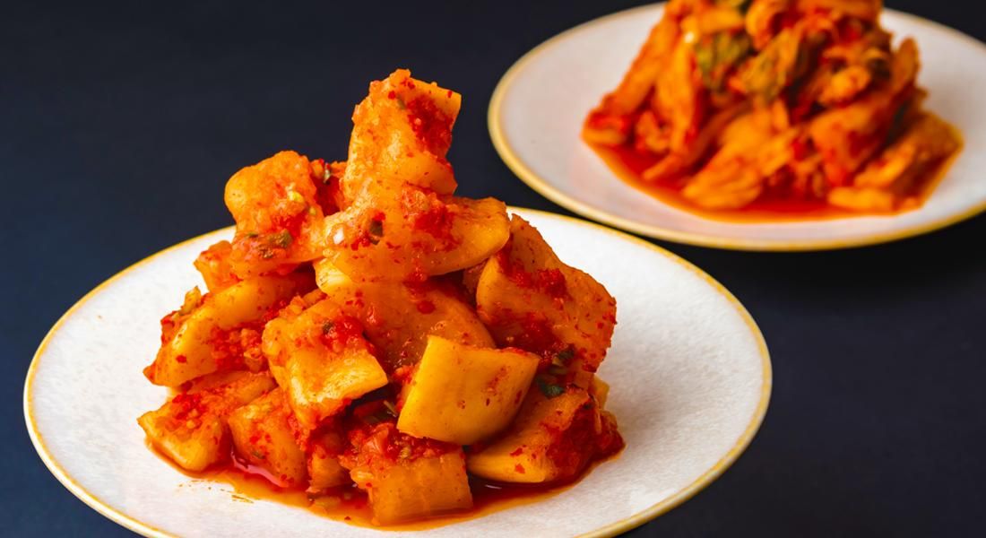 伝統製法で丁寧に仕上げた、羅山こだわりのキムチ。角切りの大根に自家製ヤンニョムを漬け込むことで、素材本来の旨みを最大限に引き出し、奥深い味わいに仕上げました。大根の自然な甘みと、コリコリとした食感をお楽しみください。